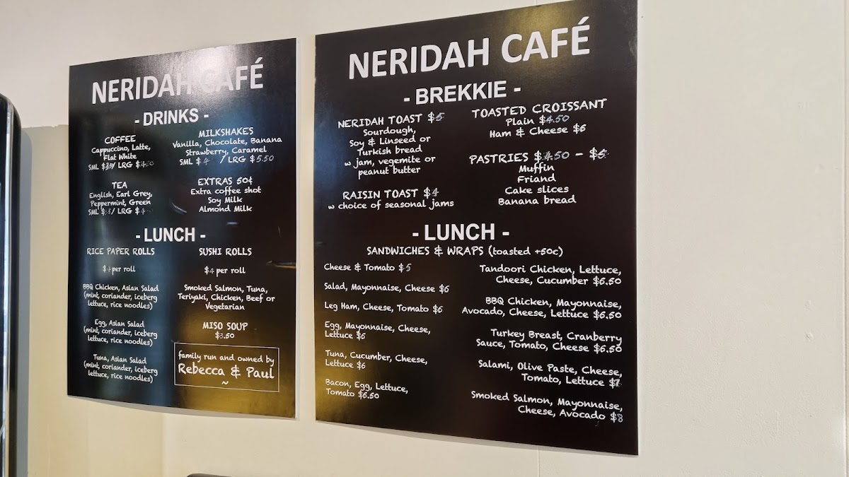 Neridah Cafe Chatswood Menu